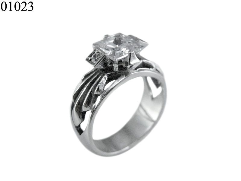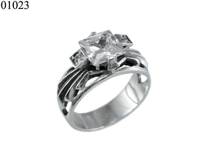 Кроме центрального квадратного камня, кольцо украшают и два маленьких кубических циркония, которые расположены по обе стороны основной вставки.