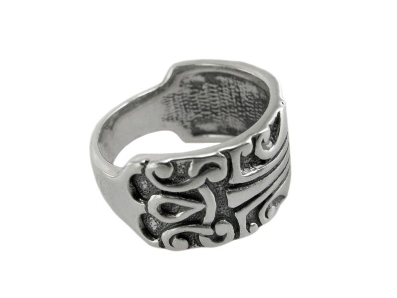 Стильное кольцо из серебра 925 пробы, без вставки. Необычная массивная форма. На кольце изображен фрагмент узора племени Майя. В комплект можно также порекомендовать серьги и браслет.