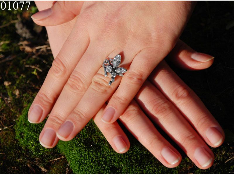 Удивительное кольцо, декорированное шестью фианитами разной формы и диаметра. Эти фианиты образуют форму, которая напоминает яркую, летнюю стрекозу.