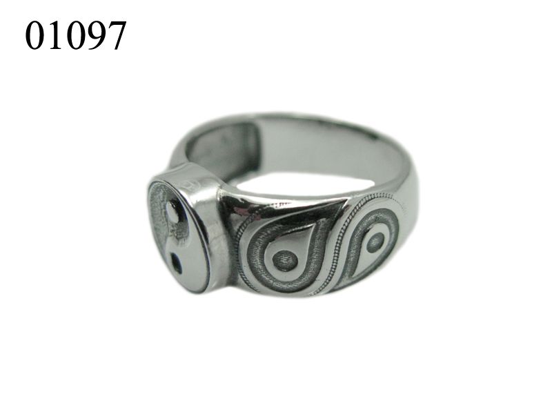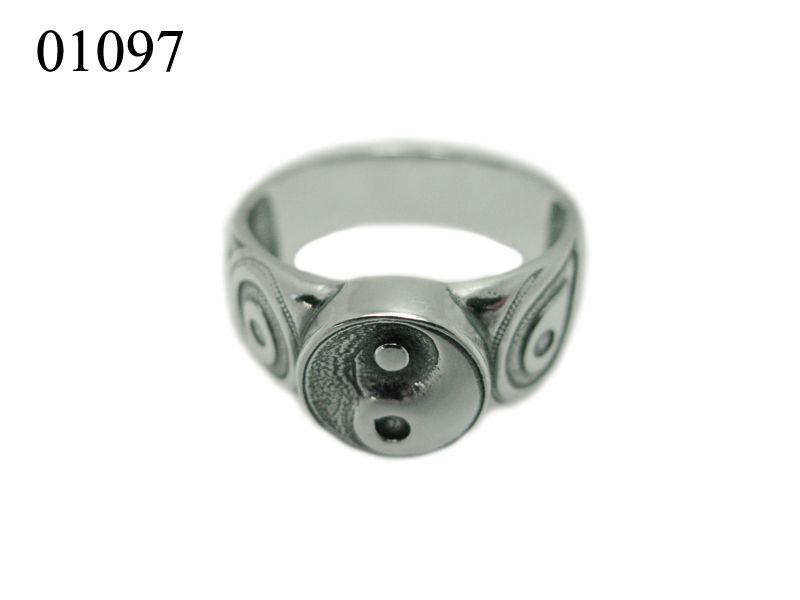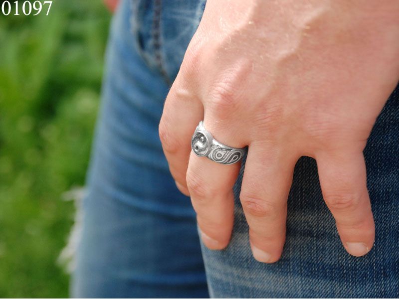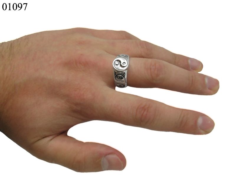 Нестандартное мужское серебряное кольцо без камней. Главный принт кольца – знак соединения женского и мужского начала – знак Инь-Янь. Также этот символ обозначает в китайской философии двойственность мира.