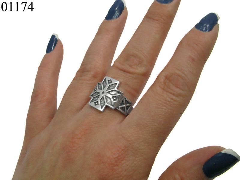 Кольцо из серебра «Україночка» - необычное кольцо для девушек, которые помнят о своих корнях, гордятся и любят свою страну. Серебряное кольцо имеет очень необычную форму – верхняя часть кольца более широкая, нижняя – узкая. Сверху изображен фрагмент украинского орнамента – резной орнамент изображен с элементами чернения. Именно такое чернение расставляет акценты и делает узор еще более интересным.