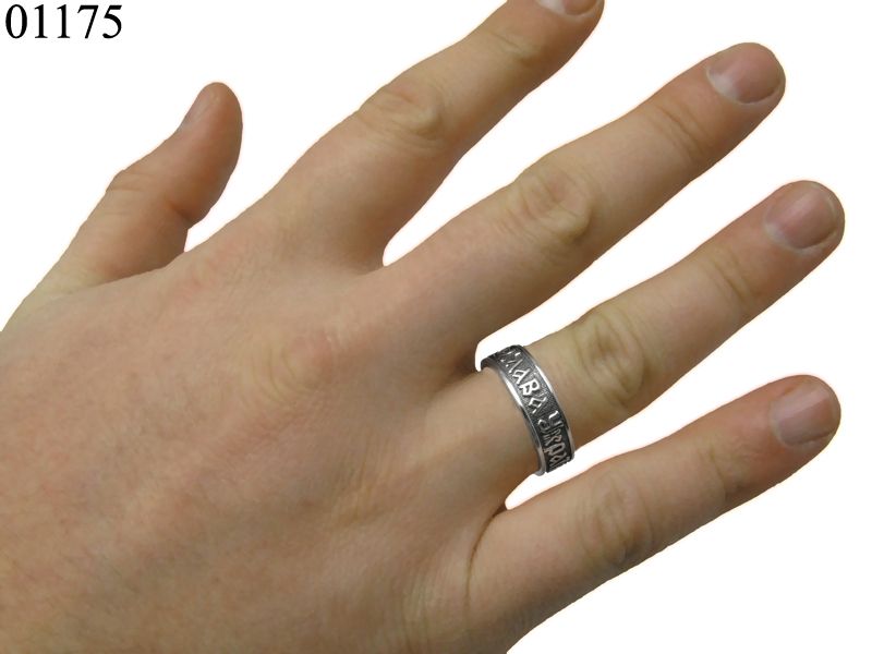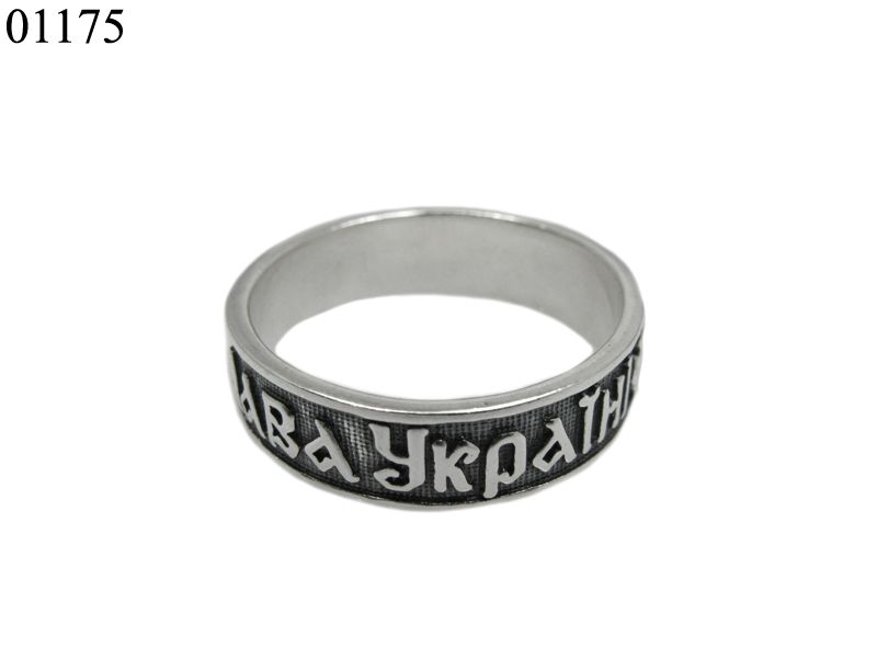 Патриотичное кольцо из серебра для парней и девушек «Слава Україні!» выполнены из стерлингового серебра 925 пробы. Кольцо имеет форму обручалки – ровное не широкое кольцо. Большую часть поверхности занимает надпись «Слава Україні!». Фон – рябое однотонное затемненное поле. По всей поверхности использовано чернение (оксидирование), чтобы подчеркнуть нужные акценты. Простота и лаконичность лежит в основе. Ведь в этом серебряном кольце важен не дизайн, а смысл, который вложен в эту самую фразу.