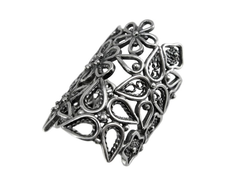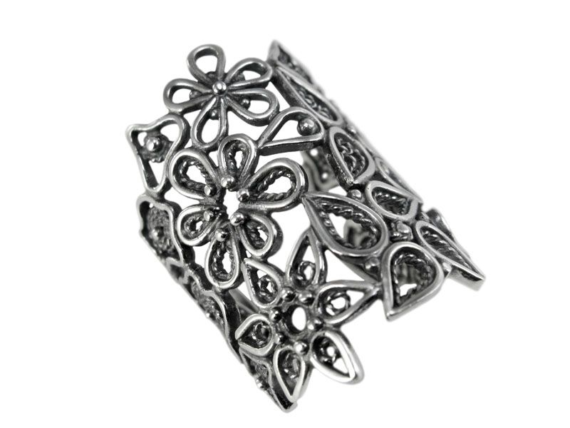 Вдохновляясь этим необычным и стильным направлением, наши дизайнеры-ювелиры создали уникальное кольцо «Кармен» из серебра 925 пробы. В основе кольца цветочный принт – такой воздушный и легкий. Все кольцо выполнено в технике филигрань, которую так любят наши клиенты.