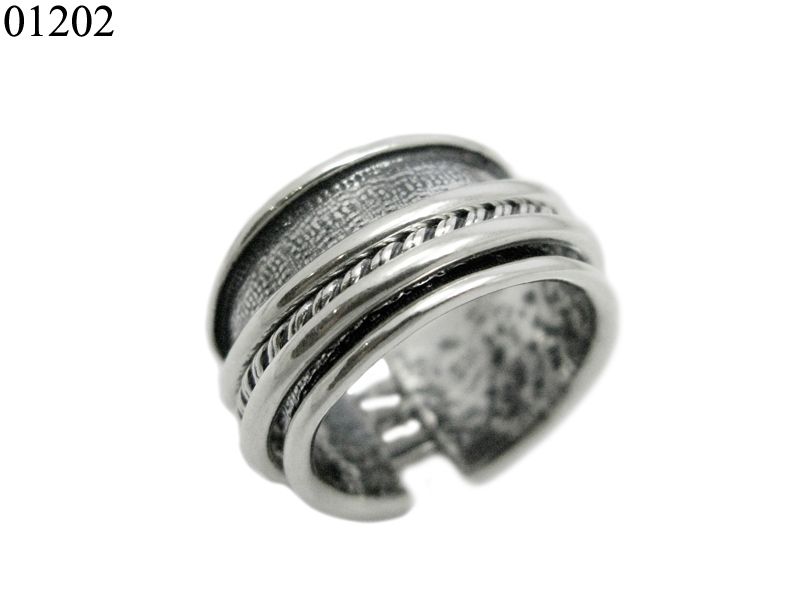Само кольцо достаточно широкое – 1,2 см. По бокам кольцо имеет два гладких бортика, а основа – неровная поверхность с плотным чернением. Особенность кольца – три тонких колечка (два гладких и одно филигранное или наоборот – два филигранных и одно гладкое), которые надеты сверху на основную часть. Колечки не закреплены, они подвижны. При движении рукой, на которой надето кольцо, колечки между собой соприкасаются и издают негромкий звук.