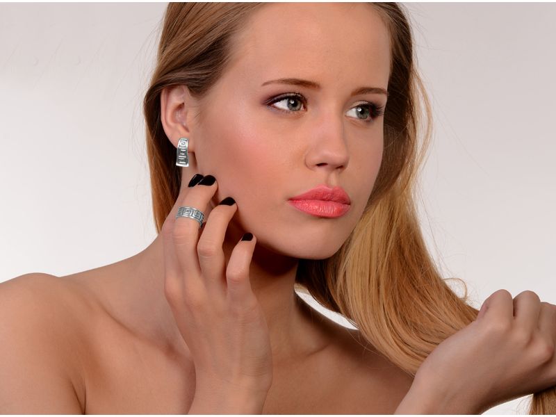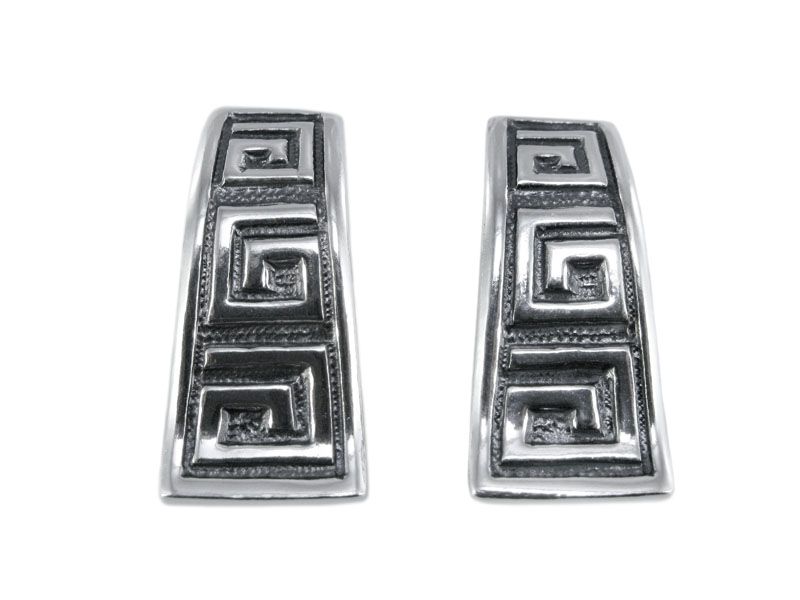 Серебряные серьги с греческим узором. Английский замок. Бескаменка. В комплект можно подобрать кольцо Эллада.