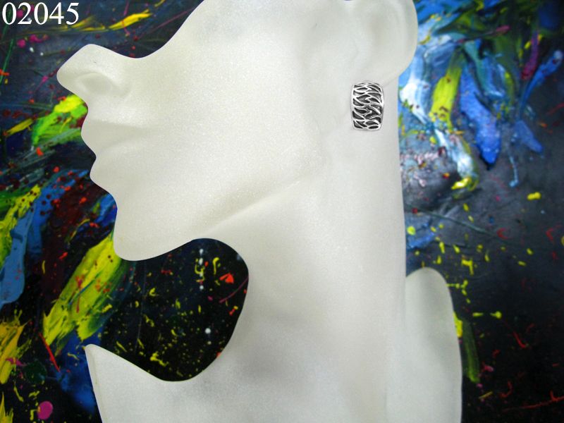 Серебряные серьги «Огонь» относятся к категории безкаменка. Их поверхность декорирована только узором и чернением (оксидировка).