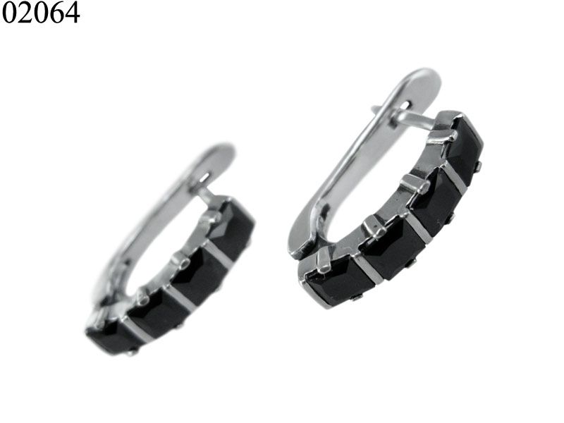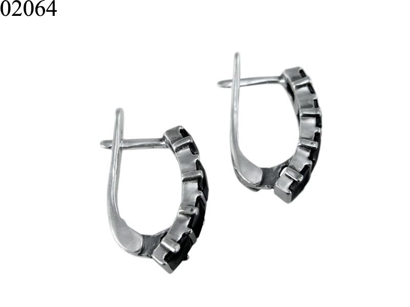 Серебряные серьги «Модерн» - простые, но очень стильные. Форма полудужки на английском замке. «Фасад» сережки заполнен камнями – на каждой сережке 4 квадратных камня черного цвета. Кубический цирконий с прекрасной огранкой. Камни блестят и переливаются как при дневном освещении, так и при искусственном свете.