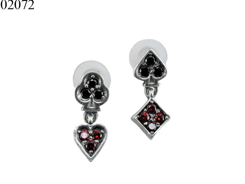 Серебряные серьги-гвоздики «Покер» - распродажа остатков! Серьги декорированы камнями красного и черного цвета – кубическим цирконием.