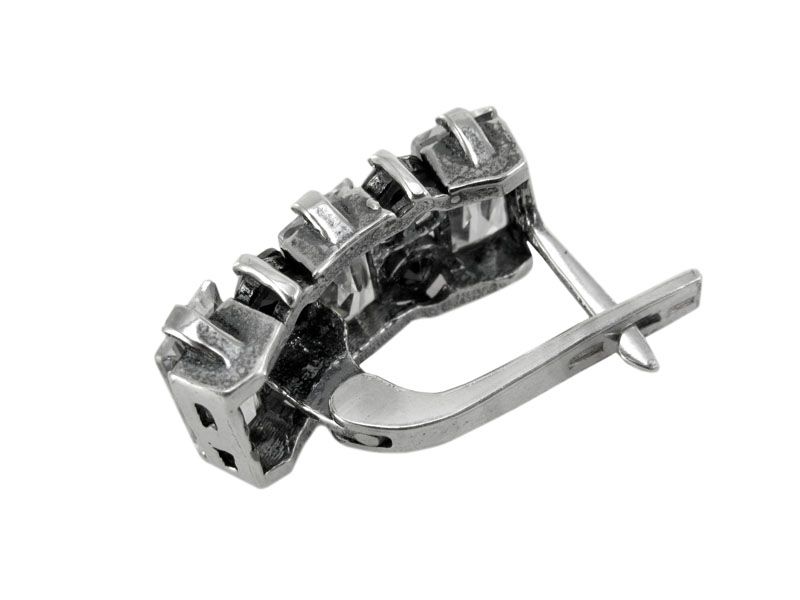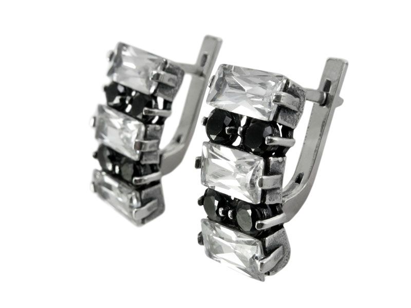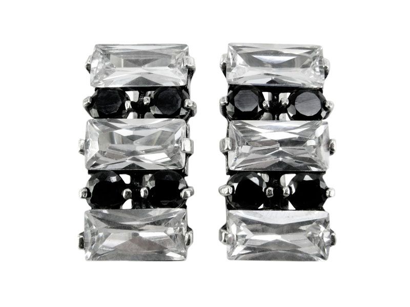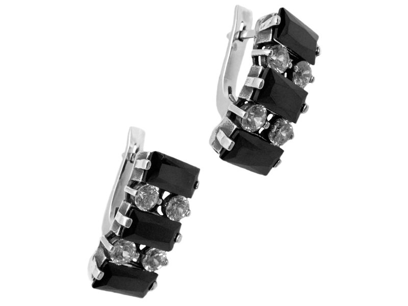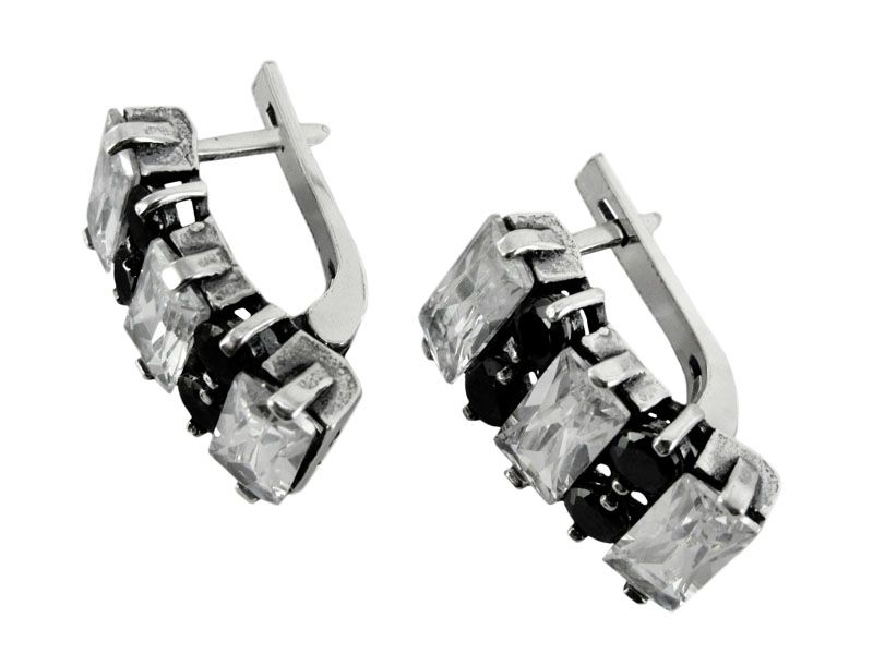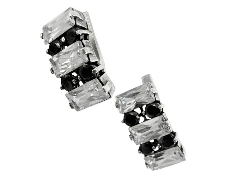 Классическая форма серьги – полудужки, которые усеяны фианитами разной формы и цвета. Камни двух цветов: черный и белый. В комплект к серьгам можно подобрать кольцо Аделаида. Такие серьги подчеркнут Ваш вкус, как на деловой встрече, так и на светском мероприятии.