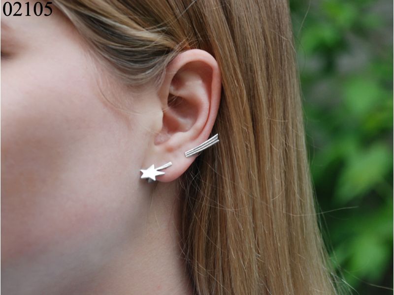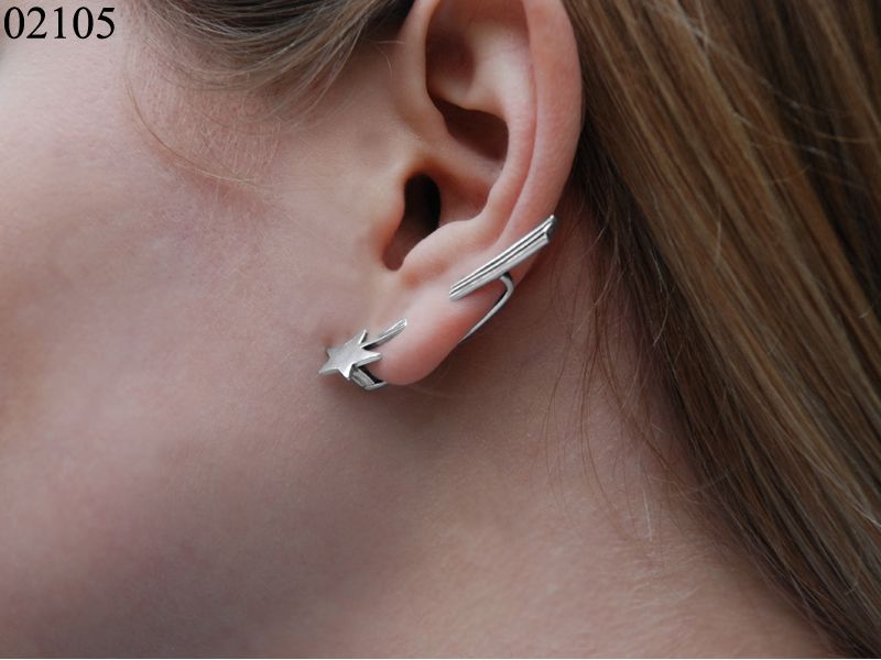 Новинка – моносерьга «Космос». Это сережка в виде кометы только на одно ушко (мочку на левом ухе). Сережка очень плотно садится на ухо благодаря тому, что она надежно крепится. Этому способствует английский замок. Для того, чтобы кафф «сел» на ушко, Вам нужно: