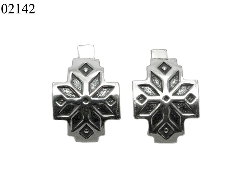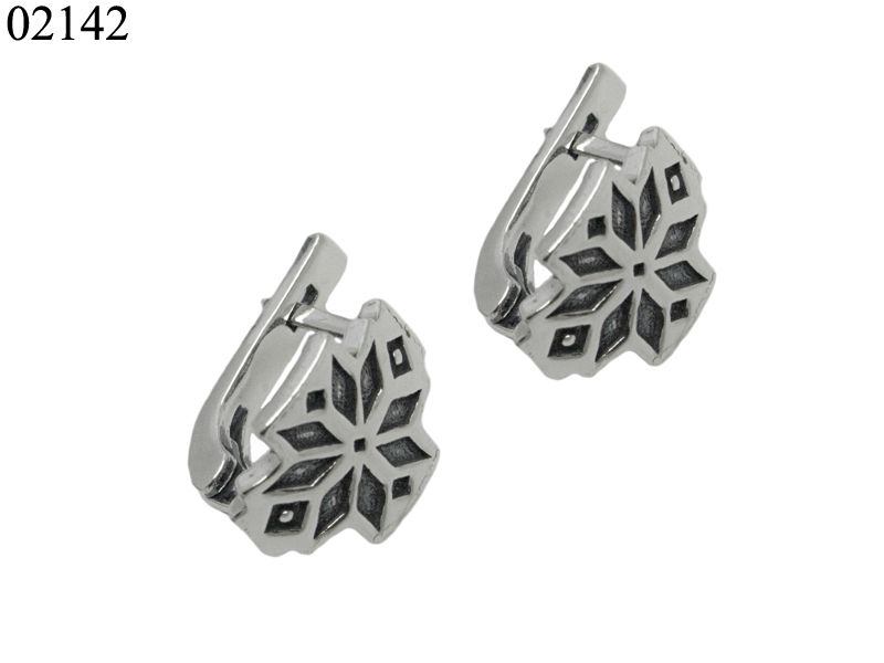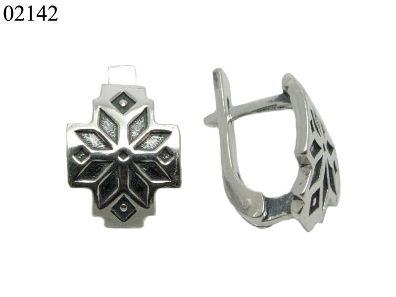 На лицевой части серебряных сережек – украинский орнамент, который подчеркнут чернением, выделяя нужные изгибы орнамента.