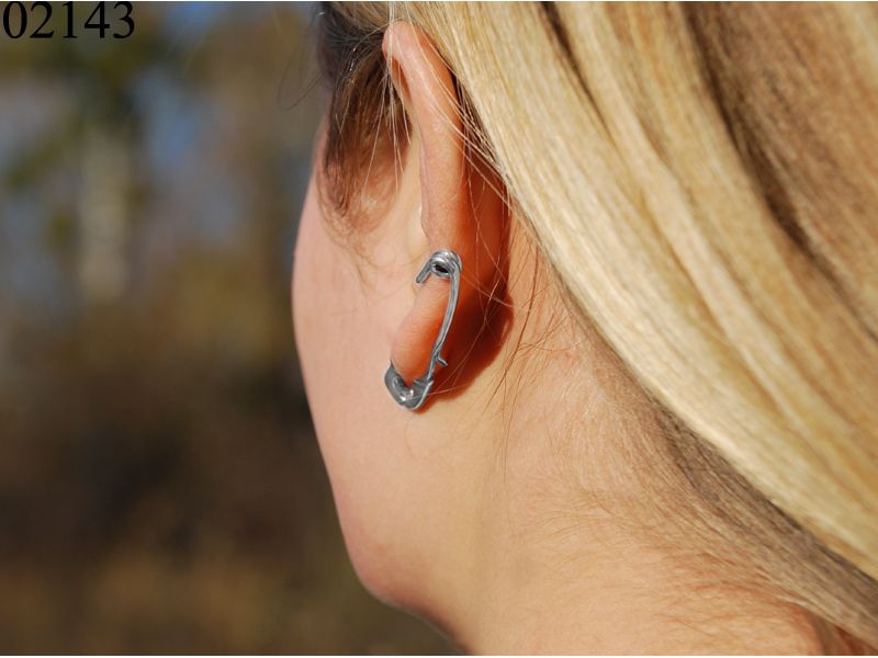 Еще одни серьги-каффы в нашем ассортименте – каффы «Булавки» из серебра 925 пробы. Что интересно?! Серьги одеваются как простые сережки на английском замке…. А потом задняя часть серьги заводится в перед. Кажется, что Ваше ушко проколото в двух местах.
