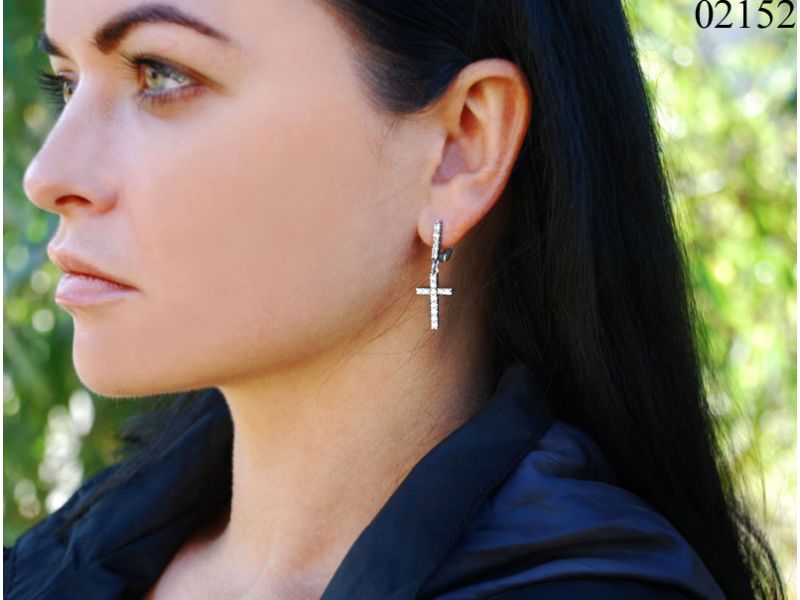 Безусловно, мы всегда в тренде, всегда держим руку на пульсе. В нашей коллекции теперь также по многочисленным просьбам появились серьги в виде крестиков. Крестики не большие и полностью состоят из белых кубических цирконов. Серебряные серьги на английском надежном замочке. Кроме того, в комплект к сережкам Вы можете купить крестик той же формы.