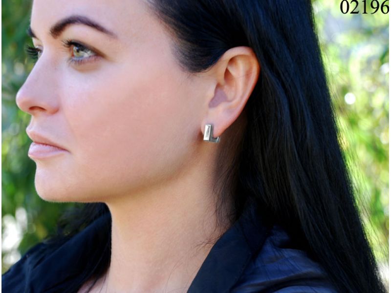 Серебряные серьги «Тавр» - сережки на английском замке небольшого размера. Форма – квадрат. Поверхность гладкая и блестящая. Сережки очень плотно огибают мочку. Благодаря форме сережки смотрятся очень оригинально и нестандартно.