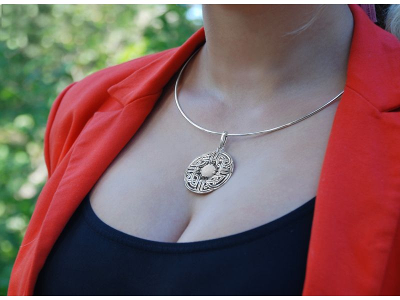 Стоит отметить, что узор в декоре кулона – это кельтский орнамент, который напоминает переплетение нитей в структуре ткани. Древние люди считали, что такое переплетение демонстрирует жизнь человека и его Путь в мире. Кроме того, как и в любом кельтском рисунке, в узоре кулона есть центр - это духовная концентрация живой энергии.