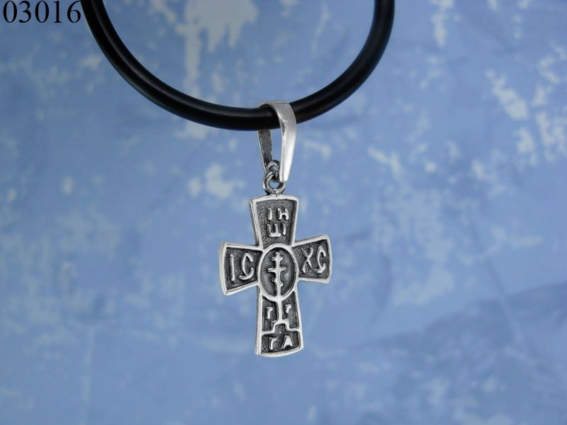Православный серебряный крест. На одной стороне креста изображено распятие и надпись «Иисус Христос», на другой стороне – «Спаси и Сохрани».