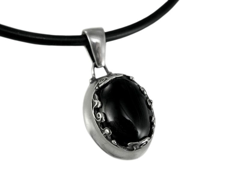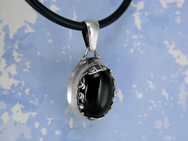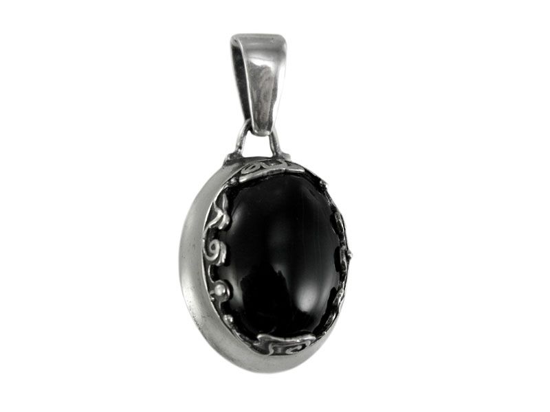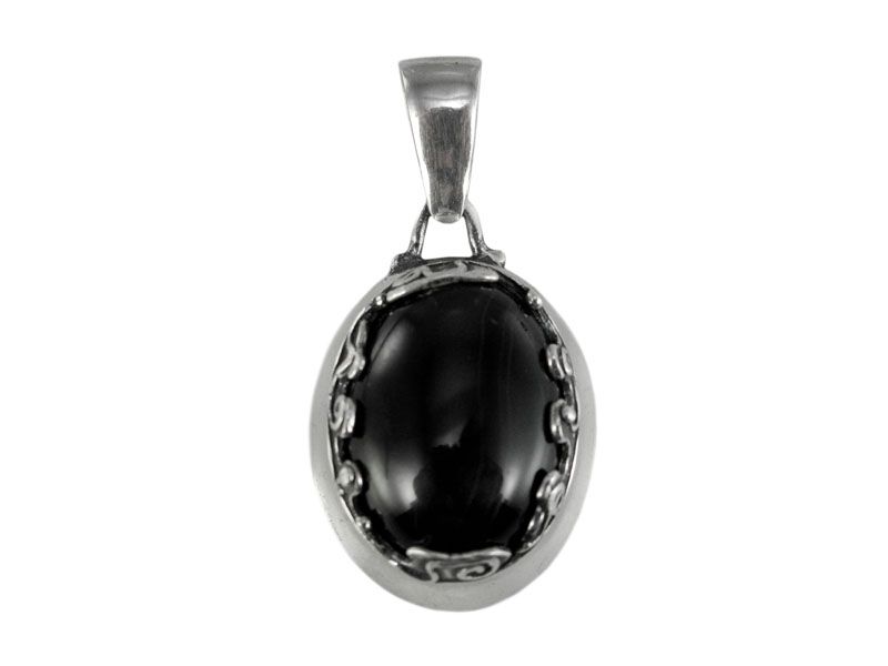 Овальный камень, заключенный в слегка черненую оправу, является центром внимания этого замечательного кулона «Барселона». Вставкой может быть: