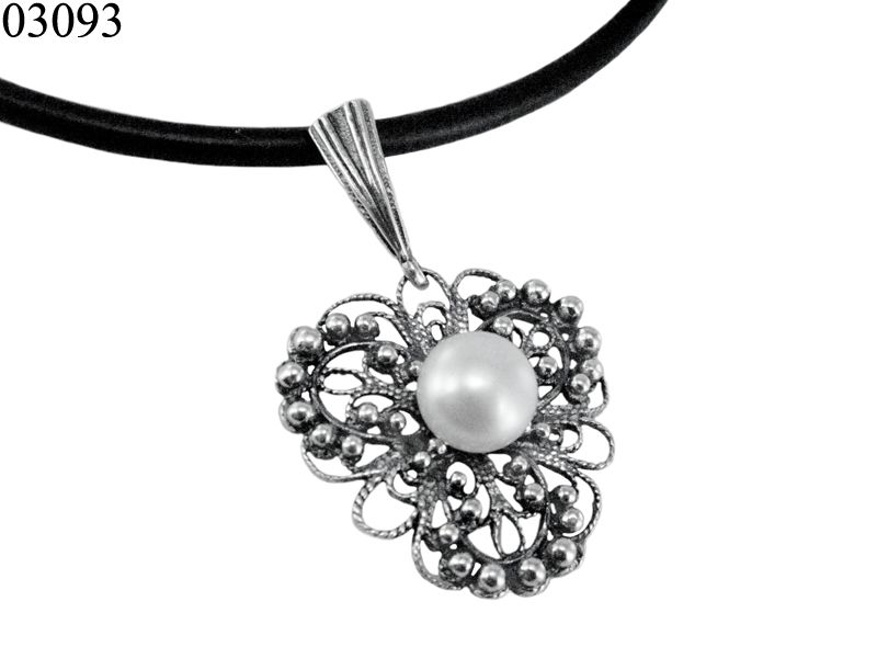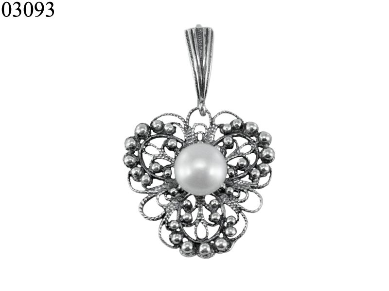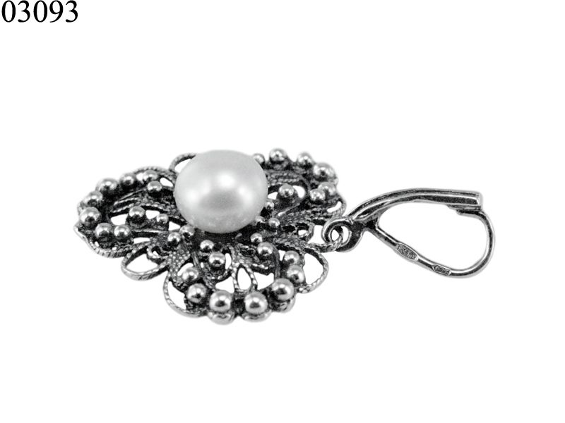 Роскошный подвес из серебра с оксидированной поверхностью и жемчугом, использована техника филиграни, имеет в наборе серьги,