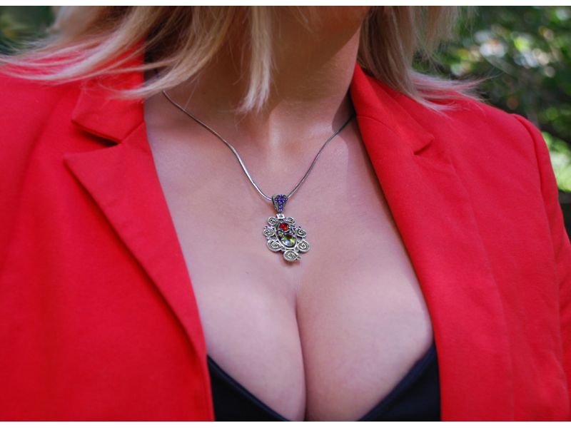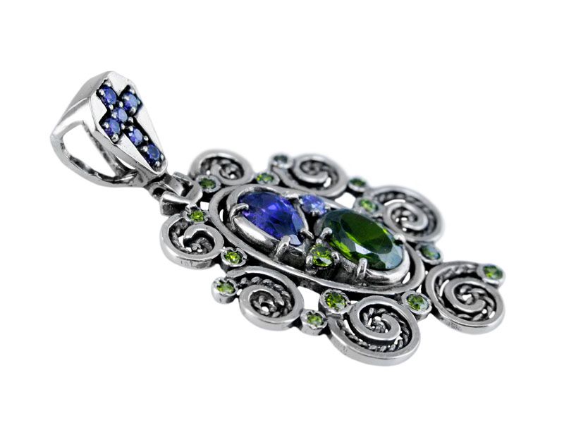 Необычный подвес из серебра со вставкой разноцветного кубического циркония. Использована техника филиграни. Прекрасно смотрится на каучуковом шнуре.