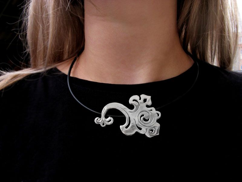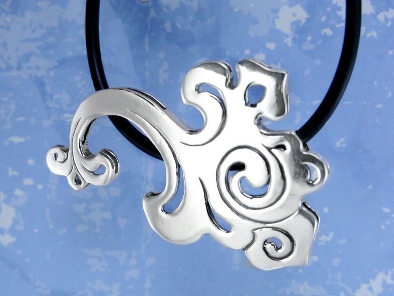 Массивный кулон прекрасно заменит колье и станет основным украшением в Вашем образе. В основе дизайна – китайский национальный узор.