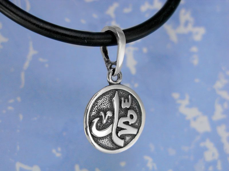 Серебряный кулон мусульманский, на котором изображен символ Мухаммада - пророка ислама. Согласно исламскому учению Бог послал своё священное писание Коран Мухаммаду, чтобы он донес его людям.