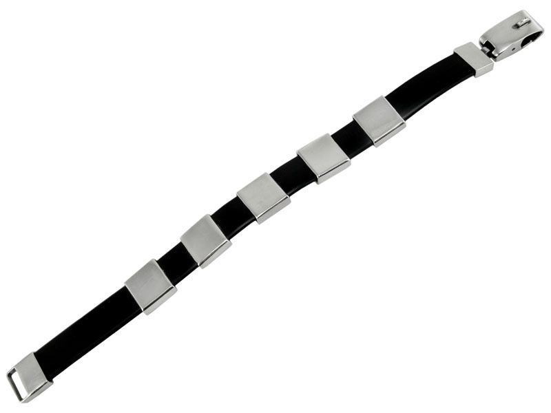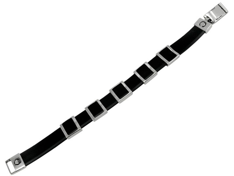 Для любого мужчины, не меньше чем для девушки, важно дополнить свой образ аксессуарами. Кроме запонок, цепей, кулонов и перстней, также стоит обращать внимание на браслеты из серебра и золота. Но, мы уверенны, что кроме цепочных классических браслетов, в этом году стоит выбирать оригинальные, необычные браслеты. Украинский производитель Kristall Artdeco предлагает мужчинам купить мужской браслет из серебра с каучуком «Коллаж». На широком ремешке расположены пять гладких квадратных серебряных накладок, а также «часовой» замок. Еще хочется сказать несколько слов о замке. Он надежный и простой, его удобно открывать даже одной рукой. Серебряные пластинки не плотно зафиксированы, поэтому Вы их можете передвигать по ремешку, расставляя на разном расстоянии друг от друга.