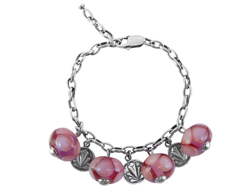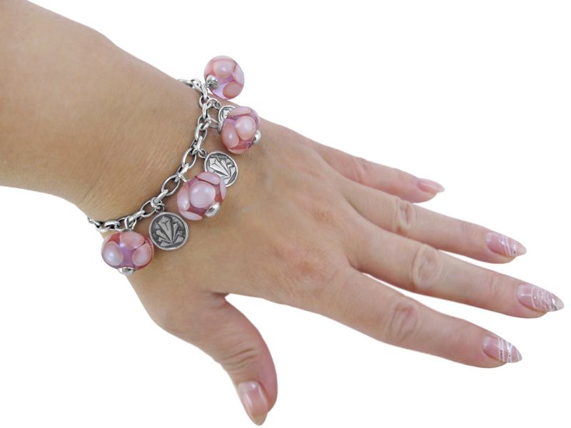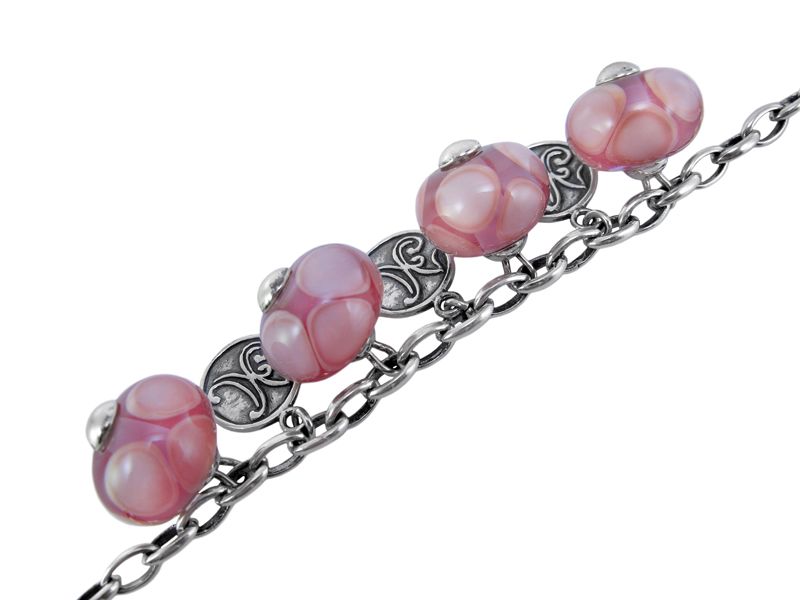 Серебряный браслет «Леденцы (розовый)» с бусинами Murano и с фирменным медальоном украинского производителя Кристалл Арт-деко – это суперсовременный браслет. Уверенны, он понравится стильным девушкам, которые следят за модой. Этот браслет не про классические и традиционные украшения. «Леденцы» - это оригинально и смело.