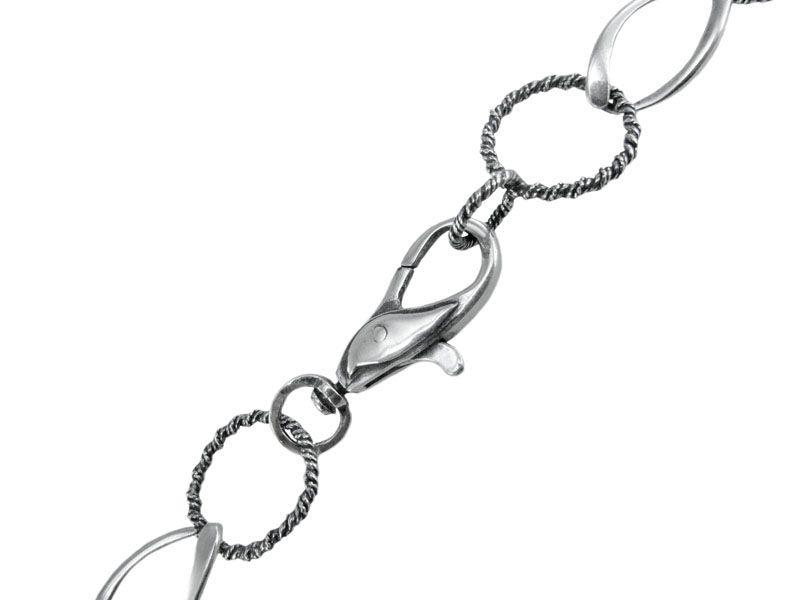 Сочетание белого и черного серебра смотрится очень современно и оригинально. Интересно также то, что колье «Рок» будет смотреться хорошо, как на открытом декольте, так и поверх одежды (блузка, гольф, джемпер).
