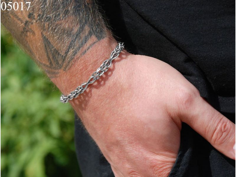 Необычное плетение браслета «Ганеш» удивит людей, которые проводят много времени в поисках оригинальных украшений без камней. Браслет достаточно массивный и даже грубый, если так можно выразиться. Но именно в этом и заключается его изюминка! Его волнистые грани создают пучки на некоторых отрезках, а на других – извилистые впадины. Кому-то такой узор напомнит песчаные горы, а кому-то запутанные сухие ветки деревьев… В любом случае, в серебряных проволоках есть однозначно что-то живое….