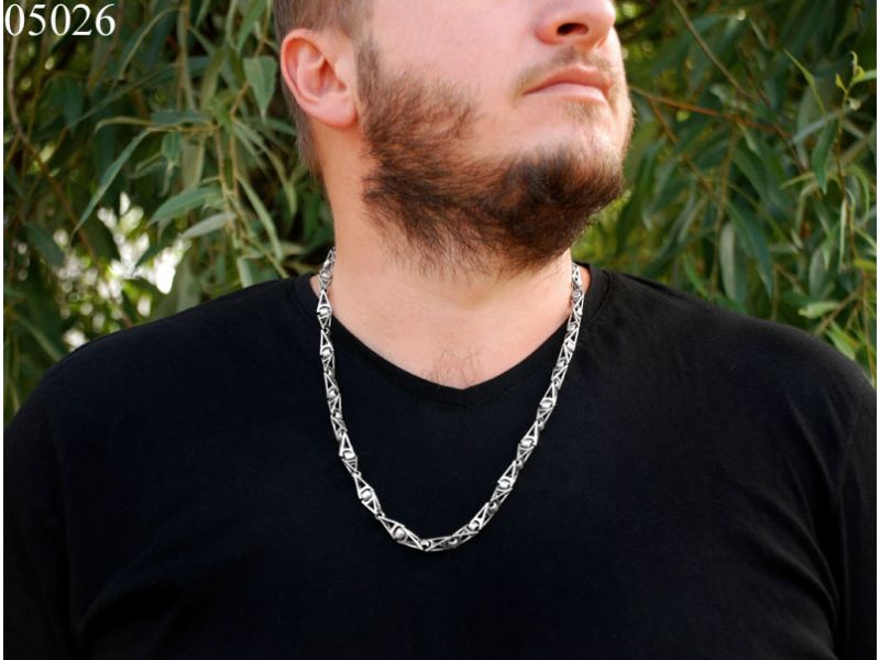 Цепь из серебра для настоящих мужчин – мужчин, сильных духом и телом. Массивная и необычная цепь из серебра 925 пробы «Рокко-Барокко» подчеркнет мужественность каждого мужчины, продемонстрирует его стиль и вкус. Данная цепь не просто оригинальна за счет своего плетения, она еще и является одной из первых цепей, которая сочетает в себе литьевые процессы и ручную работу. Основные элементы цепи изготавливаются при помощи литья и соединяются элементами, которые изготавливаются вручную.