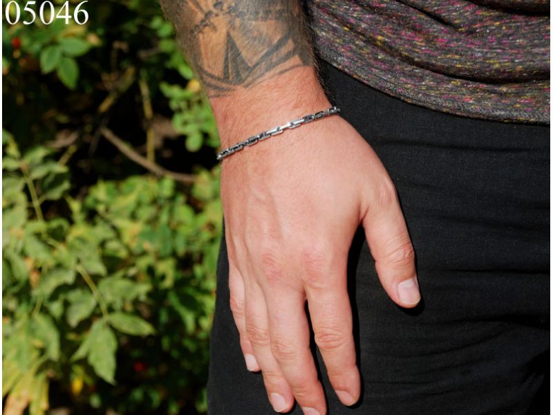 Поверхность браслета черненная – оксидированная. Замок – классический карабин.