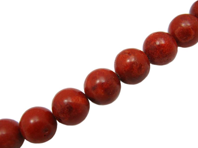 В данных бусах использован сицилийский губчатый красный коралл. Оттенок – темный красный с темными включениями.