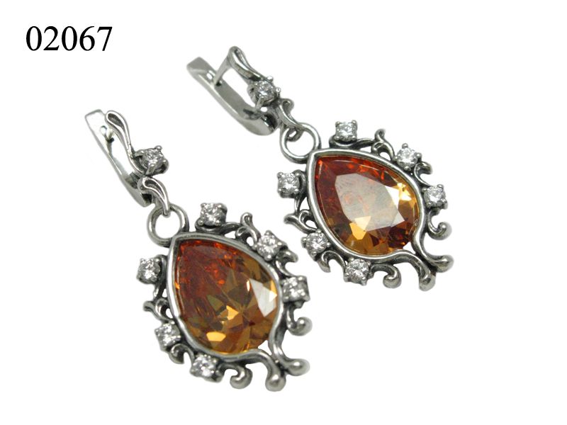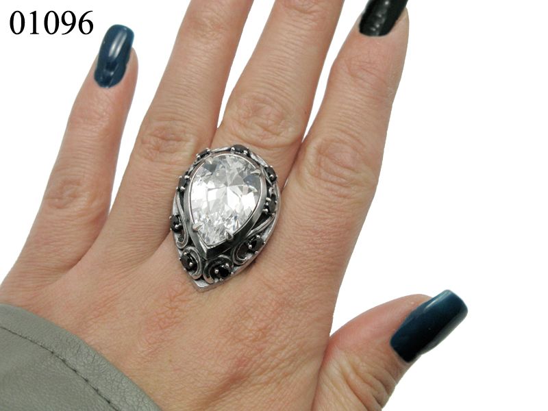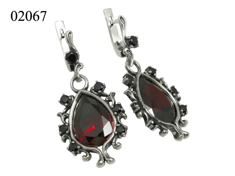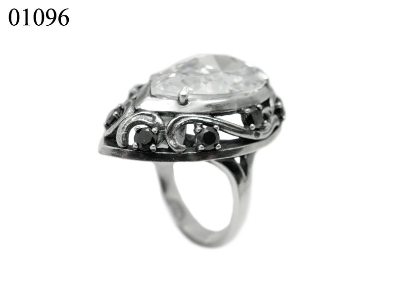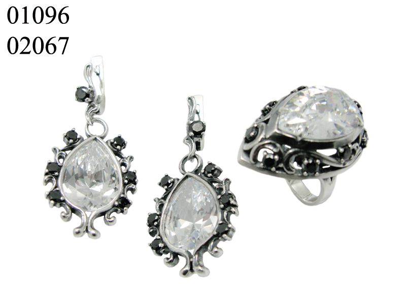 Праздничный, нарядный комплект из серебра, который состоит из сережек и кольца. Центральная вставка – каплевидный фианит белого либо красного, либо желтого цвета. По периметру каждое украшение также декорировано более мелкими фианитами черного цвета, которые добавляют определенной строгости комплекту.