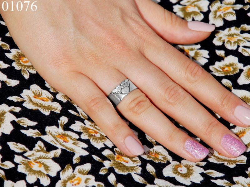 Наш новый романтичный комплект из серебра 925 пробы – комплект «Любовь» - кольцо и серьги. Кольцо в форме широкой обручалки, серьги-полудужки на английском замке. Если бы мы просто изобразили сердечко на гладкой поверхность – это были бы не мы… Сережка тоненькая и имеет скошенный низ. На каждой сережке по два сердечка. На одной сережке 1 гладкое и 1 в точечку, на второй сережке 1 гладкое и 1 в клеточку. На кольце изображено сразу три сердечка, каждое из которых имеет свой рисунок: гладкое, в точечку, полосатое. Сердца заключены в треугольник (или одно большое сердце).