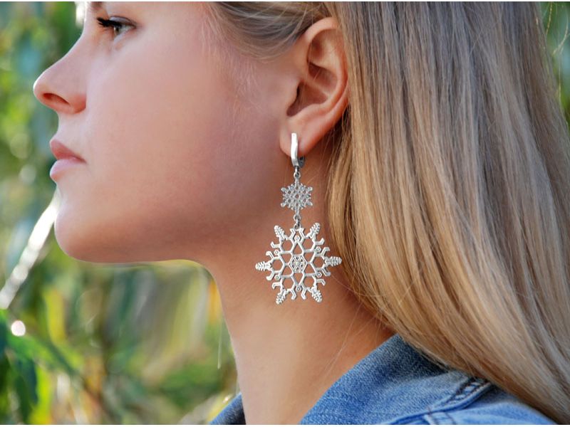 Серебряный набор «Снежинка» добавит Вашей жизни свежести – даже когда на улице будет +30, серебряные снежинки освежат Вашу кожу и настроение. Ну а зимой, Ваши снежинки на ушах подчеркнут морозную погоду и новогоднее настроение.