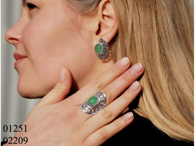 Перед Вами новый комплект производителя Кристалл Арт-деко – серьги и кольцо «Гелиос». Овальный камень расположен в центре серебряной пластины с прорезным узором. Выглядит такое сочетание современно и стильно. Вы можете выбрать для себя камень из списка ниже: