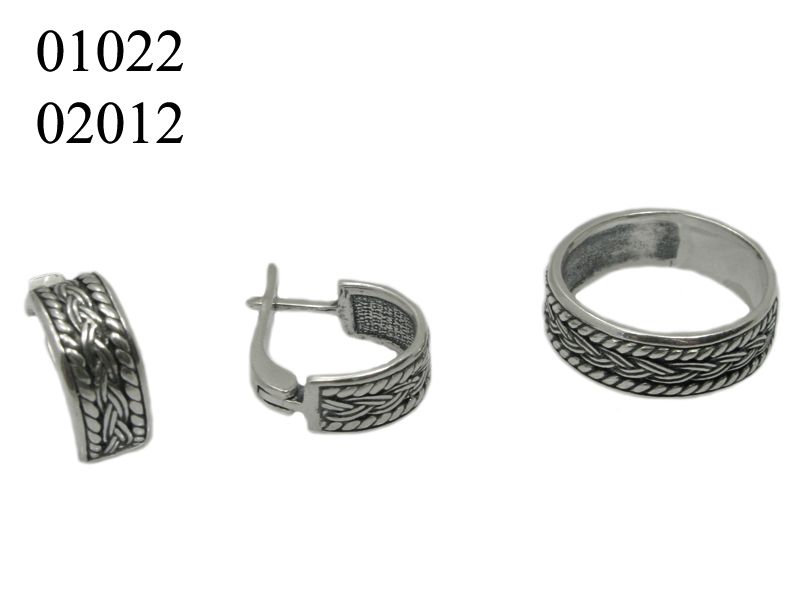 Классический набор из серебра, состоящий из кольца и сережек. Форма кольца – обручалка с утонченным рисунком, сережек – полумесяц на английском замке. Такой комплект прекрасно подходит для повседневной носки.