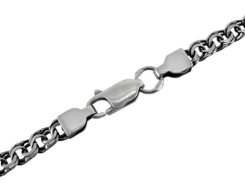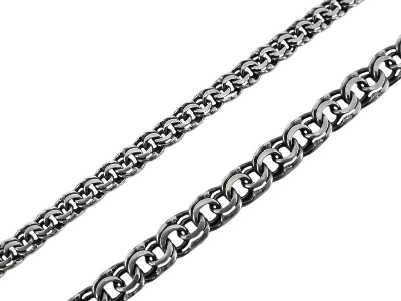 Мы также можем предложить Вам серебряную цепь бисмарк толщиной 0,7-0,8 см. Эти цепи из серебра отличаются от стандартных цепей не только шириной, но и весом. Они гораздо тяжелее. Скорее такой вес выберет для себя мужчина.